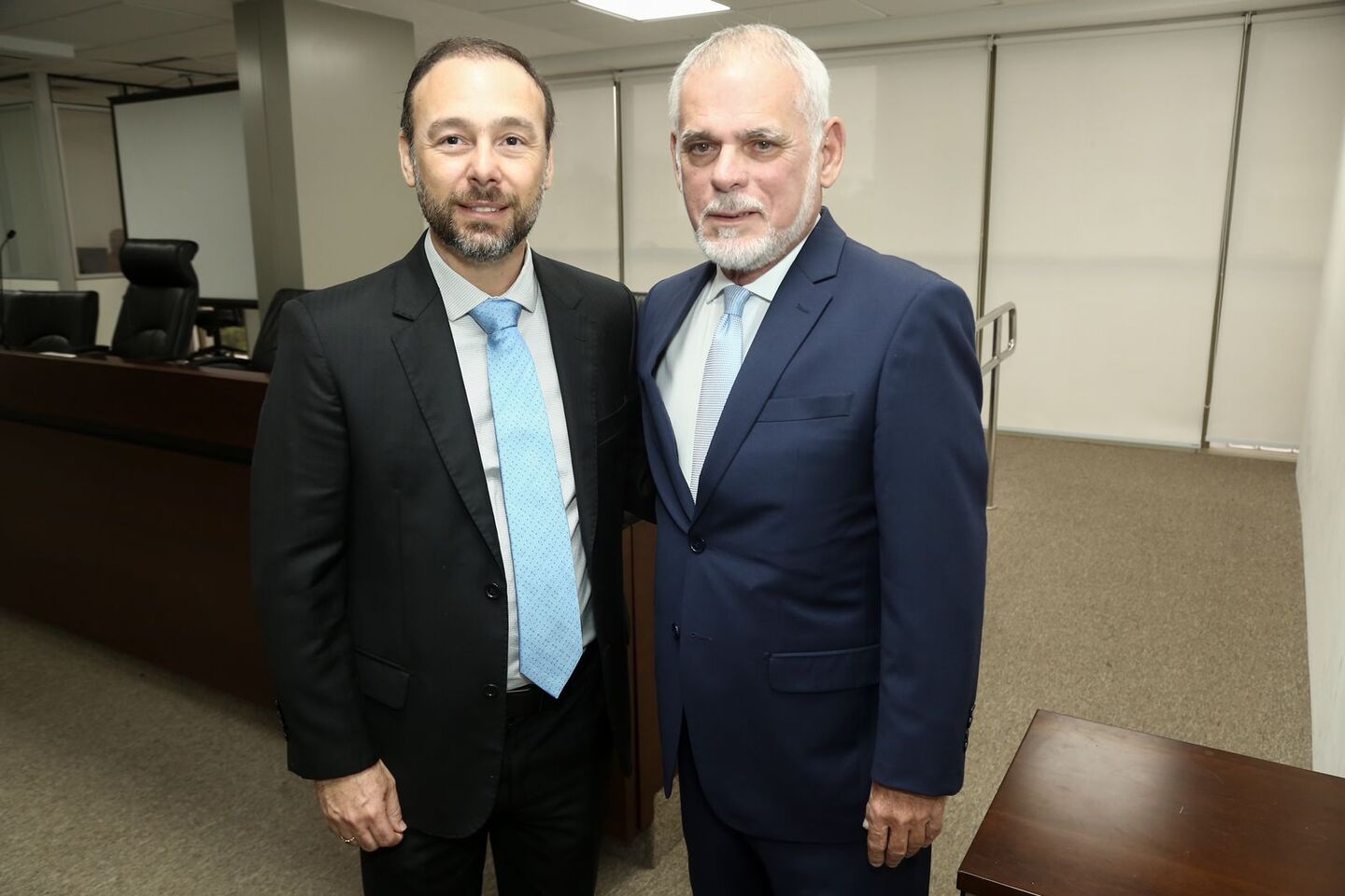 Presidente da Associação da Imprensa de Pernambuco (AIP), Múcio Aguiar e o diretor executivo da Folha de Pernambuco, Paulo Pugliesi. Foto: Alexandre Aroeira/Folha de Pernambuco