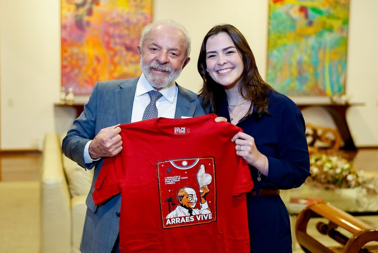 O evento em homenagem ao ex-líder será realizado no dia 13 de agosto, na Câmara dos Deputados, em Brasília. Além do convite oficial, Maria presenteou o presidente com uma camisa comemorativa feita especialmente para lembrar o legado político de Arraes.