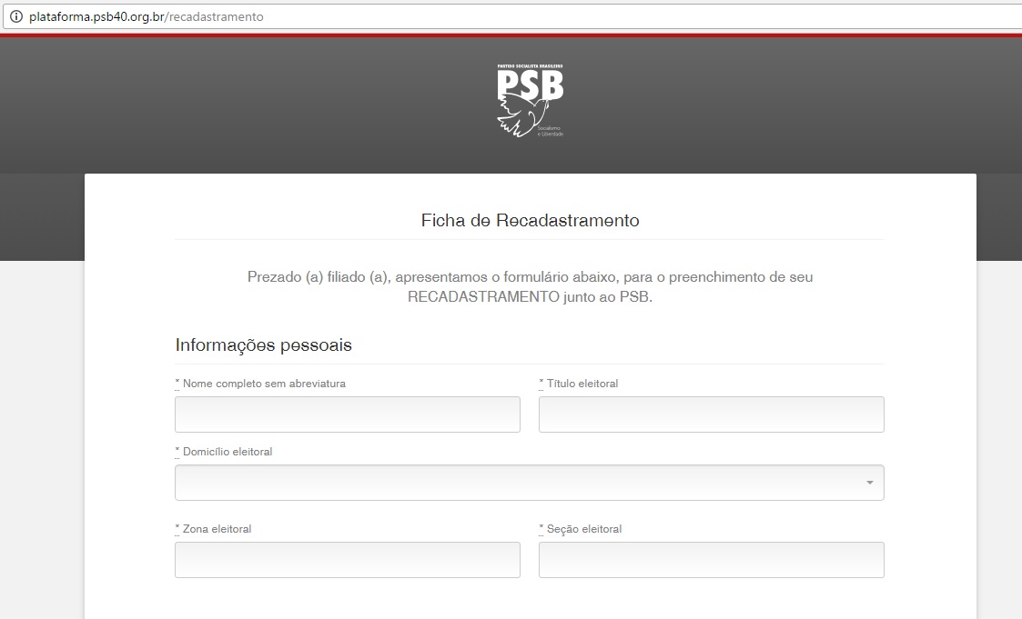 Para realizar o processo, o filiado deve acessar o link http://plataforma.psb40.org.br/recadastramento, que está inserido no site nacional do PSB, e preencher as informações solicitadas. A aprovação do filiado é feita pela direção municipal ou estadual da legenda.