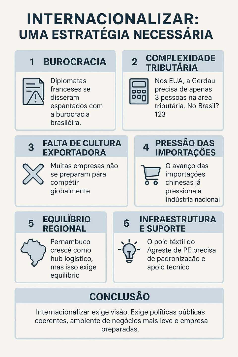 Conclusão? Internacionalizar exige visão. Exige políticas públicas coerentes, ambiente de negócios mais leve e empresas preparadas. Não basta abrir portas para o mundo — é preciso saber atravessá-las com inteligência.