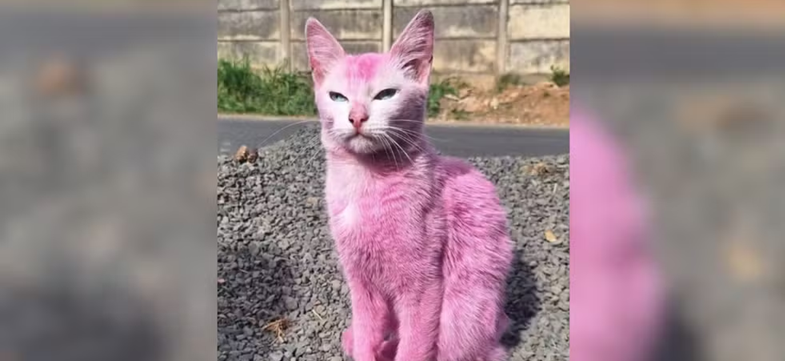 Uma mulher usou corante de móveis para pintar a pelagem da sua gata de rosa em Minas Gerais.