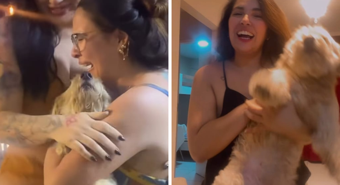 Sheik, o cãozinho de Suyenne Montarroyos, de 36 anos, se reencontrou com sua tutora na noite desta quinta-feira (6).