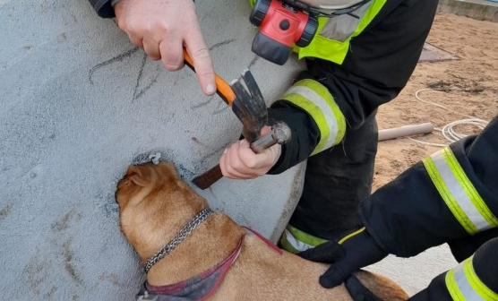O bloco precisou ser quebrado para soltar o pet