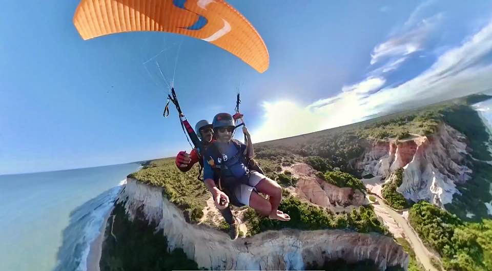 A falésia tem um acesso para você observar o visual lá de cima: é imperdível! Bastam uns 15 min de subida relativamente fácil e você chega ao mirante que é de onde também saem os voos de parapente. Uma experiência realmente imperdível pra quem curte aventura, adrenalina e um visú de tirar o fôlego! Fiz o voo com o piloto Ivan mais conhecido por Blá, ele conta com 35 anos de experiência e super indico. O voo dura uns 15 a 20 minutos, passa pela praia da Pitinga, Lagoa Azul, e de longe se vê o Monte Pascoal. Esta aventura percorre um trajeto de 7 Km da Costa de Arraial D´ajuda a uma altura de 150 metros.