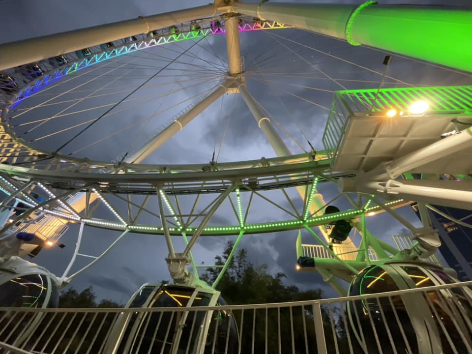 E para completar a maratona, sim dá pra fazer mais coisas num só dia. O busão da Santa e Bella, quando inicia o trajeto de devolver os hóspedes aos hotéis, faz uma parada juntinho da Roda Gigante. Desci lá e fui conferir este atrativo que também não conhecia. A Roda Gigante Big Wheel é mais um atrativo imperdível! A volta dura cerca de 20 min e ela não tem parada para embarque na cabine. Gira tão lentamente que você consegue entrar numa boa sem que ela precise parar. Foi inaugurada em dezembro de 2020, oferece aos visitantes uma vista panorâmica da orla, da mata atlântica e, claro, dos arranha-céus que são marca registrada deste destino. A Big Wheel tem 65m de diâmetro e está a 17 metros acima do nível do mar, somando a altura máxima de 82 metros. Fica no extremo da Barra Norte. São ao todo 36 cabines com capacidade máxima para seis pessoas cada, todas climatizadas, com câmeras de monitoramento e interfone de emergência. Funciona das 9h às 21h. Quem pretende visitar a atração sem muita fila deve preferir horários entre 13h30 e 16h. Todos os dias a partir das 19h30, acontece um show de luzes, com duração de 5 a 10 minutos. Ingressos: R$ 58 (adulto) e R$ 29 (crianças de 5 a 12 anos). Tem opção de cabine com bebida e também de levar pet de pequeno porte.
