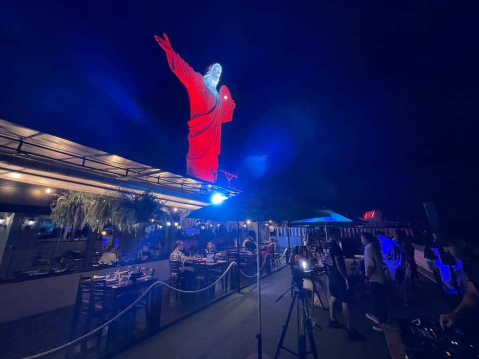 De lá, segui para a Avenida Brasil onde estava hospedado e por coincidência estava passando o ônibus gratuito que leva até o Cristo Luz. Embarquei! Localizado em um dos pontos mais altos de Balneário Camboriú, a 150 metros de altura, o monumento tem 33m de altura e 22m de largura. Foi esculpido de forma artesanal em argamassa pelo escultor Genésio Gomes Moura, e construído em ferro, aço e cimento. Inaugurado em outubro de 1997, vem sendo cada vez mais visitado na cidade. O sistema italiano com alta tecnologia, ilumina todo o corpo do Cristo. De braços abertos, o Cristo segura em sua mão esquerda o símbolo do sol para iluminar a cidade. O raio de luz gira a 180º e atinge uma distância de 15 km. As luzes do Cristo se acendem diariamente de dezembro a março, a partir das 20h e, de abril a novembro, a partir das 19h. Para cada dia da semana existe uma cor predominante com uma representação simbólica. Tem vista panorâmica e capacidade para 260 visitantes. Junto a ele funcionam restaurantes e costumam acontecer eventos inclusive com apresentação musical e DJs num visual incrível! Para visitar o complexo Cristo Luz, há ônibus gratuito durante o ano todo passando em vários pontos da Avenida Brasil, no centro de Balneário Camboriú. Existem placas de sinalização na via e o busão é todo adesivado. A entrada de acesso ao Cristo custa R$ 55 inteira e R$ 27,50 a meia.