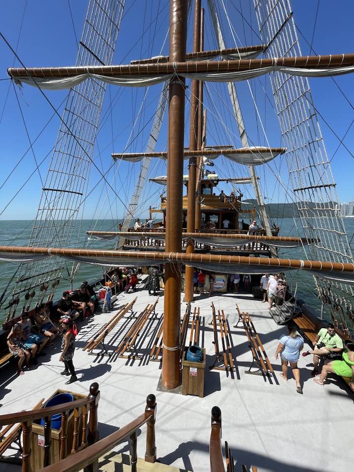 Finalizado este tour, você já vai estar pertinho de onde sai o Barco Pirata, outro passeio imperdível na cidade. Sai nos horários das 10h, 12h, 14h e 16h. Se fizer tudo que falei antes com agilidade, dá tempo de pegar o barco de meio-dia. A embarcação temática conta com apresentação de atores caracterizados, muita música e brincadeiras. O percurso é pela costa de onde se tem uma vista linda da beira-mar, passando ainda por uma ilhota (não para lá) e finalizando o trecho na Praia de Laranjeiras. O trajeto que dura cerca de 1h30. O barco pirata custa R$ 70 (inteira).