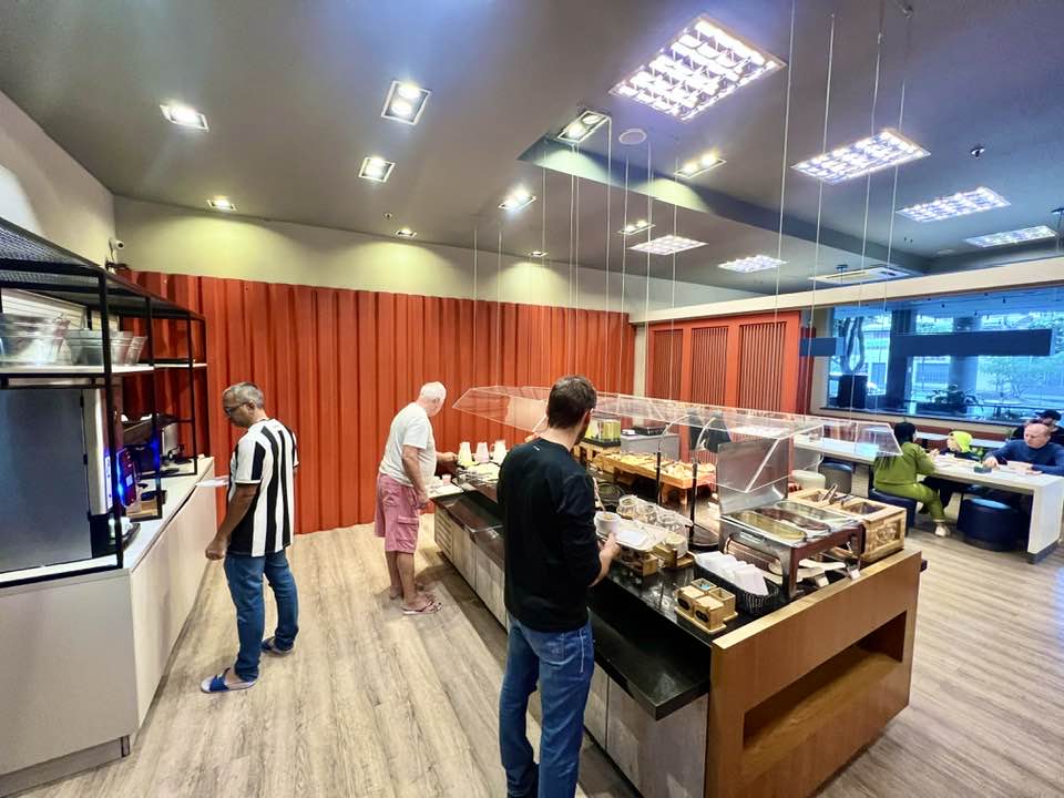 Funciona também no hotel um restaurante para almoço, de segunda à sexta-feira, com buffet a quilo. Pra quem quiser comer pela rua, lá perto funcionam alguns bares e restaurantes, além de redes como a Burger King, por exemplo. O atendimento do hotel é cheio de gentileza e simpatia, isso também é bem importante!