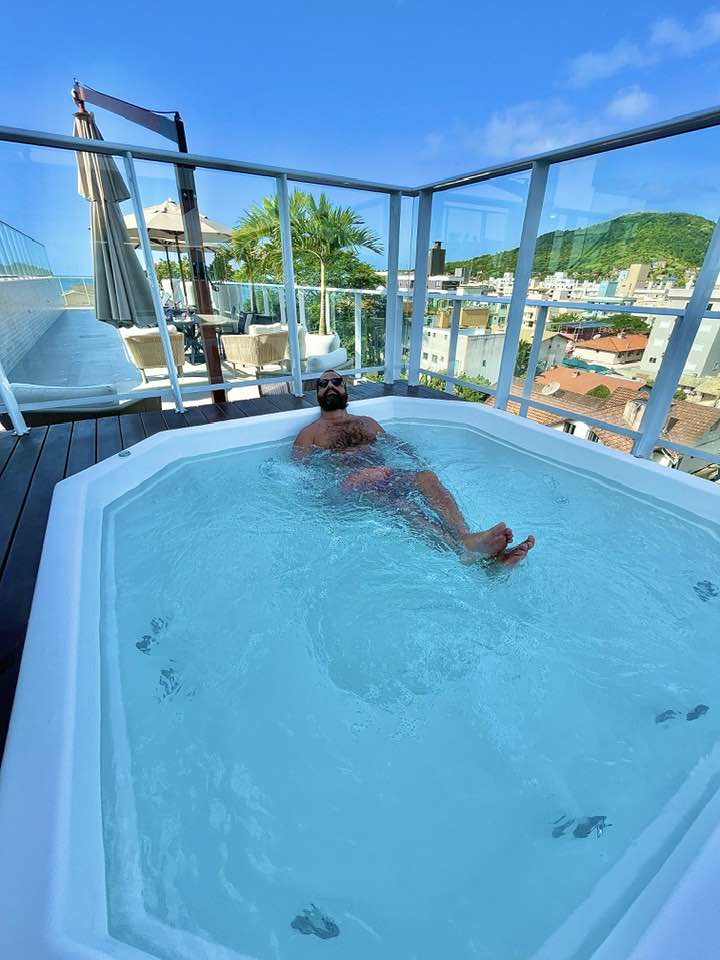 Escreva a legenda aquiInaugurado em dezembro passado, o hotel tem cheiro de novinho. Possui 96 unidades e todas com mesmo padrão, com tamanhos entre 30 e 32 metros quadrados. O serviço de quarto é feito a cada três diárias, precisando de mais é cobrado o valor de R$ 100. O enxoval de cama é trocado também a cada três dias, se precisar trocar antes cobra-se taxa de R$ 8 por toalha e R$ 50 por enxoval de cama. O hóspede tem direito a uma tolha de praia por dia (grátis) e retirada na recepção. O café da manhã , servido das 7h 30 às 10h, é daqueles bem caprichados com croissant, salame, pães, tortas e pudim. Para quem quiser jantar a dois, o restaurante é bem requintado e cheio de charme, funcionando até às 22h. E a infra do Vila do Centro Apart Hotel é excelente:tem estacionamento, brinquedoteca, playground, academia e, pra relaxar, uma piscina com borda infinita no rooftop, além de jacuzzis ao ar livre. Do que mais precisamos? Nada! É um lugar pra toda a família e cada unidade tem direito a um armário com cadeira e guarda sol de praia (junto da recepção). O hotel fica a poucos metros da praia do Centro, a mais movimentada por lá.