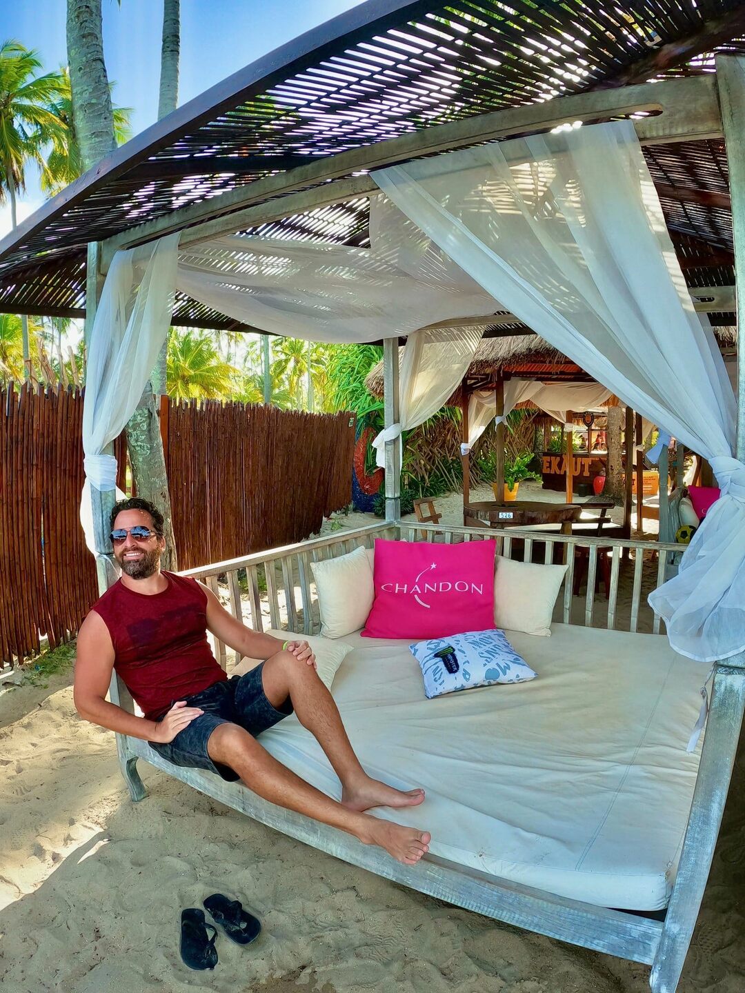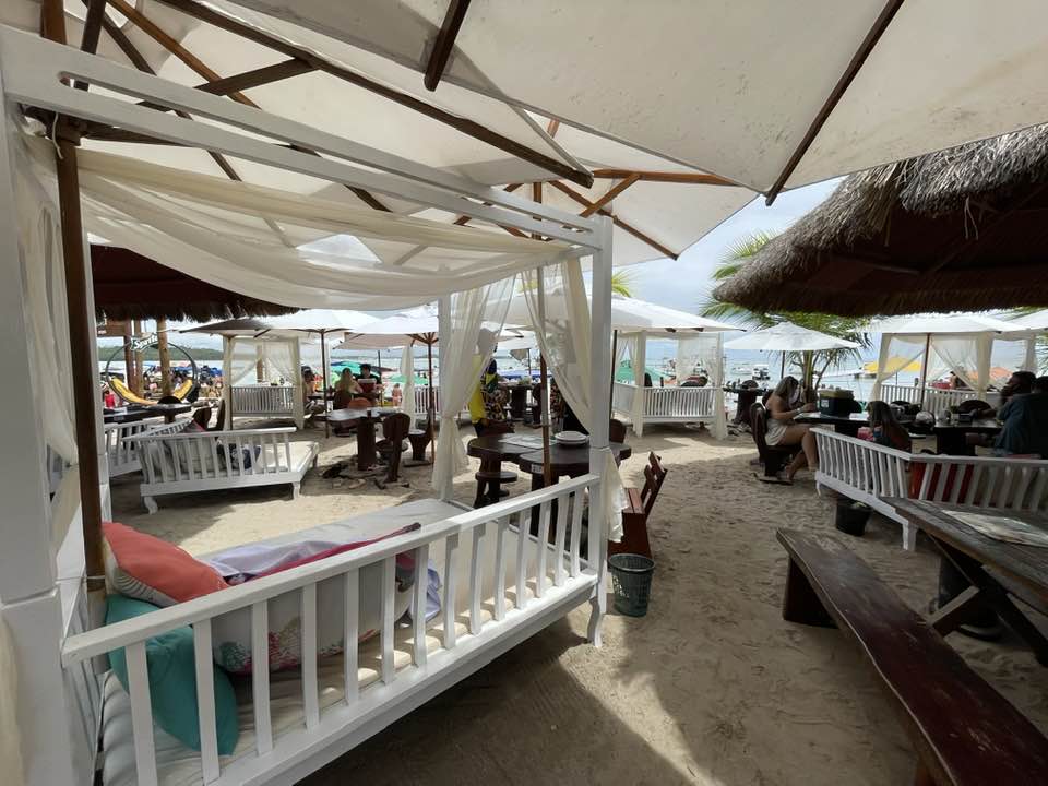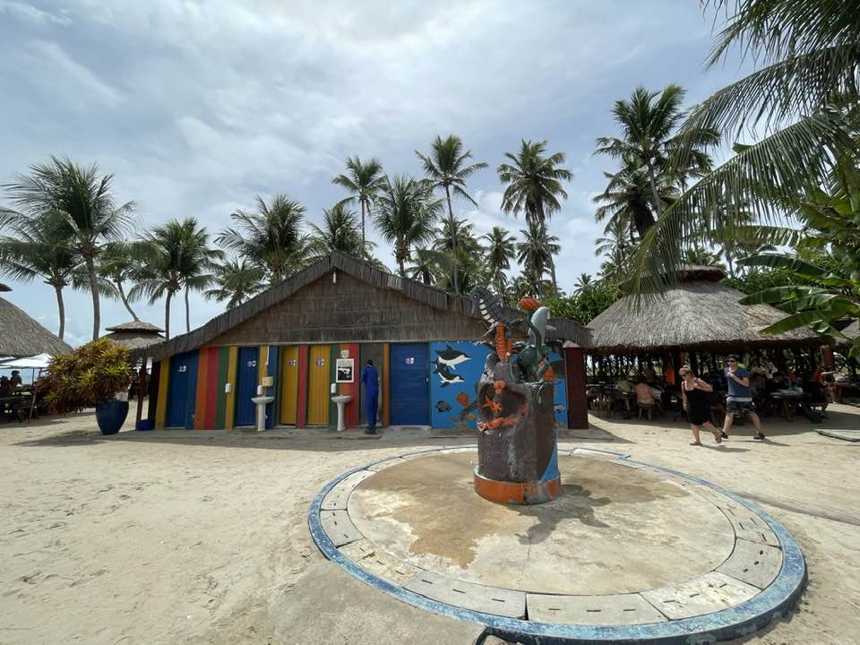 Escreva a legenda aquiDepois de percorrer 100 km, partindo de Recife, chegamos ao paraíso chamado Praia dos Carneiros, nome dado ao destino devido à família poderosa que era dona de meio mundo de terras por lá. Ao chegar, nosso ponto de apoio é o famoso Bora Bora, que tem uma estrutura excelente para receber os turistas, com restaurante, banheiros, duchas, redes, espreguiçadeiras, armários para guardar pertences, áreas de convivência, e ainda sorveteria, loja de roupas, playground e um monte de cenários instagramáveis, além dos famosos gazebos, aqueles espaços com sofás e cortinas super glamourosos.