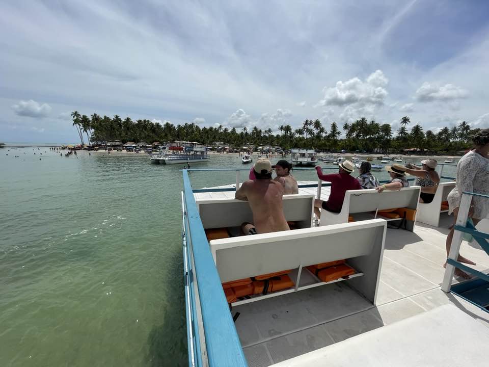 O passeio sai por volta das 10h30 e dura em média 2h. Os grupos são identificados pela cor da bandeirinha do barco e tem passeio pela manhã e também à tarde, claro que quem sai cedinho pra Carneiros faz logo na primeira saída até porque o grupo pega a estrada de volta para Recife às 15h. A embarcação do Catamarã Tours tem piso superior e os visitantes podem circular à vontade. São três paradas neste passeio, vamos lá?