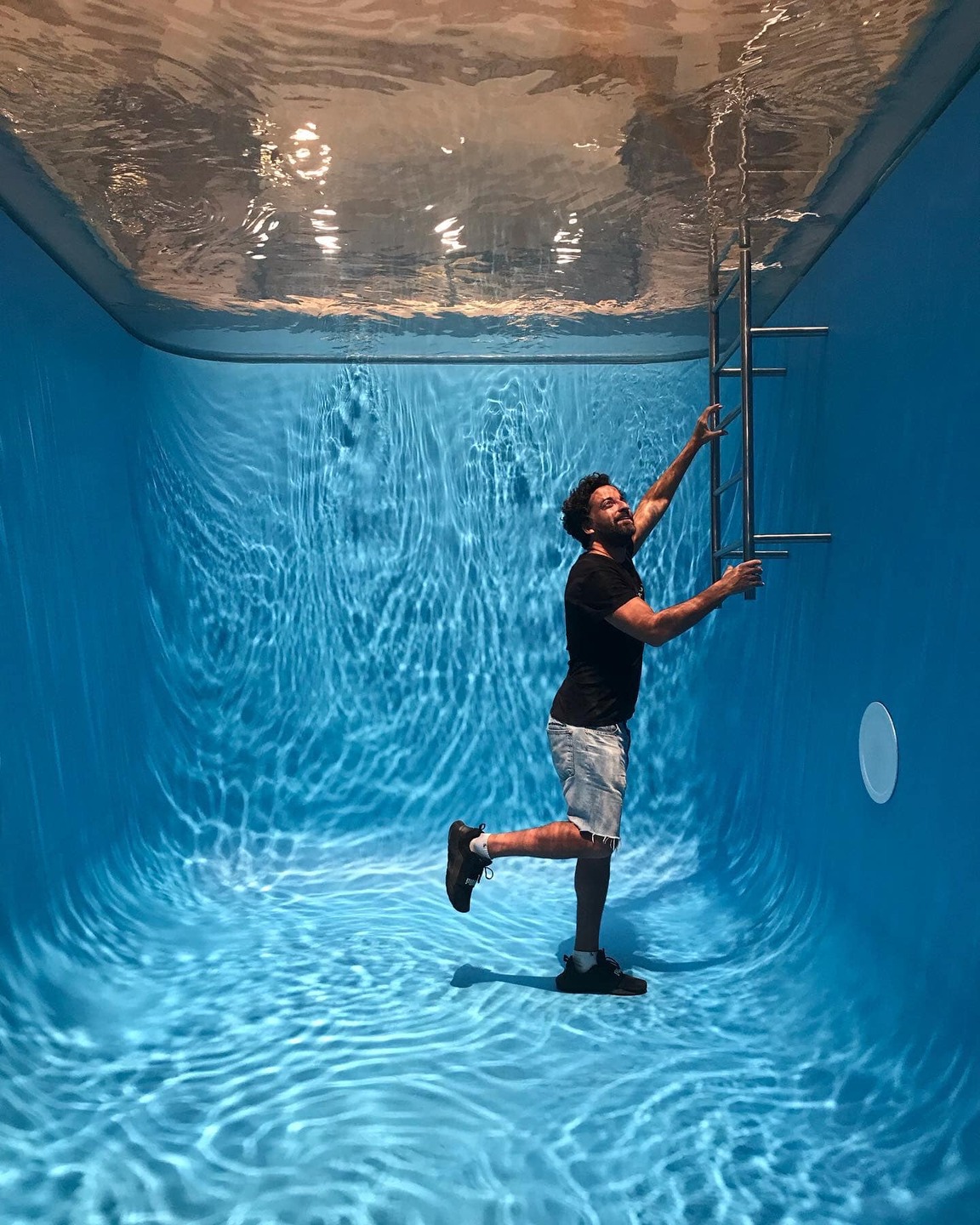 Uma das mais bem sucedidas experiências nesse sentido – que se tornou uma de suas obras mais populares e desconcertantes – é “Swimming Pool” (piscina, em português), que será instalada no piso térreo do CCBB SP. Atração onde quer que seja exposta, a piscina de Erlich provoca sensações absurdas tanto por quem entra nela – sem se molhar – quanto para quem está do lado de fora: uma camada de água entre um lado e outro cria a ilusão de que as pessoas ao fundo estão de fato mergulhadas numa piscina. “Trazer um nome de peso internacional como Erlich, reafirma o compromisso do Banco do Brasil em democratizar o acesso à cultura e contribuir com a promoção, divulgação e incentivo à arte”, afirma Cláudio Mattos, gerente geral do CCBB SP.