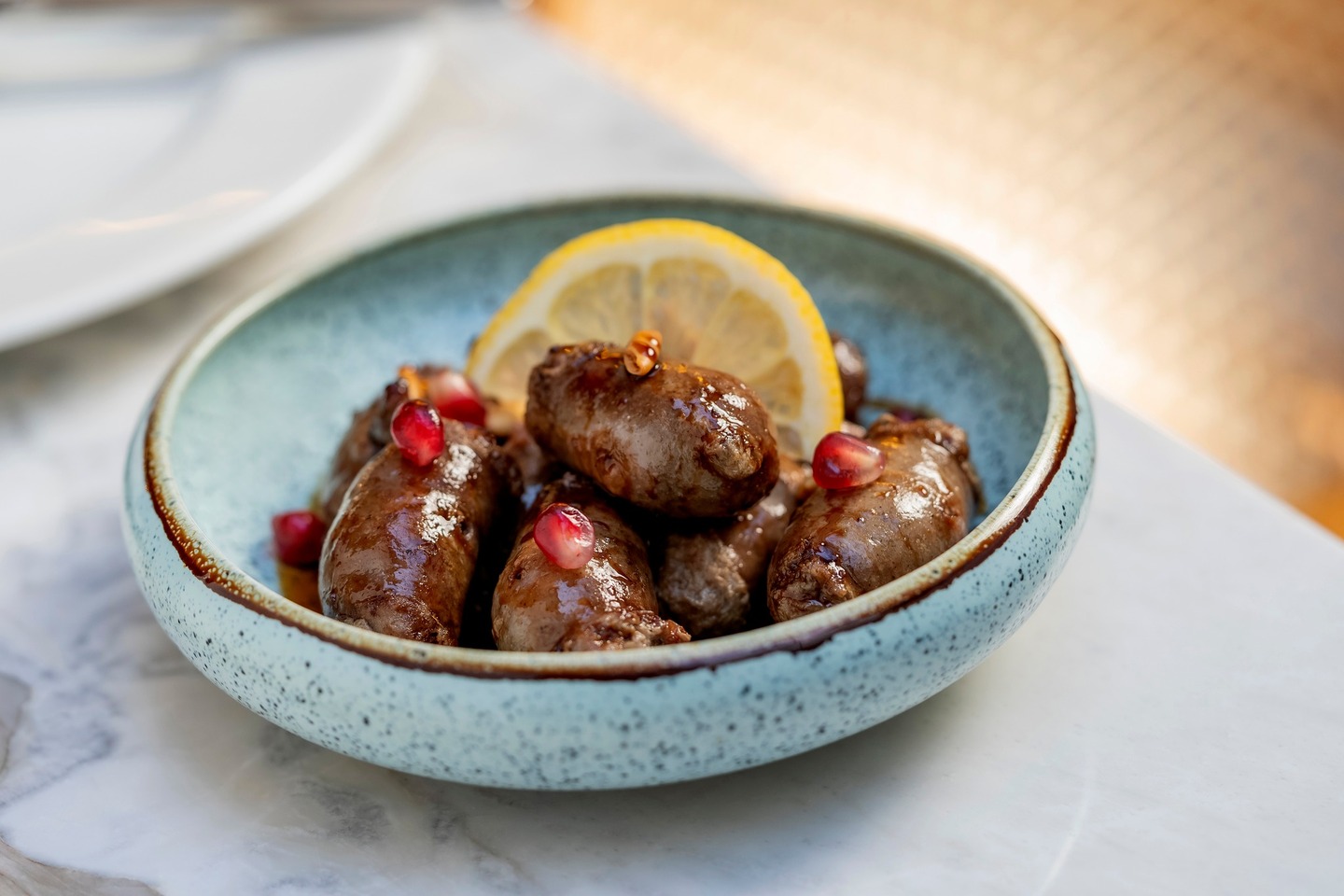 Dos pratos, faz sua estreia a posta de peixe branco, assada com uma crosta crocante de pistache e guarnecida de purê de favas verdes (R$130), e que agora faz companhia aos já clássicos do lugar. Um deles é o chich barak (R$90), que são mini capeletes recheados com carne e cozidos na coalhada. As mezzes - , com várias pequenas porções servidas ao mesmo tempo - seguem como estrela, e na versão para duas pessoas (R$197) reúne tabule, fatuch, homus, coalhada, babaganuch e quibe cru. Para adoçar a refeição, tem a Torta Dubai (R$40), inspirada no chocolate Dubai e que é feita de mousse de chocolate meio amargo com creme de pistache e massa de knefe crocante. Outra sugestão é o Sorvete Arabia (R$68), um sorvete de pistache com topping de frutas vermelhas, calda de chocolate, praliné de pistache e knefe, perfeito para compartilhar.