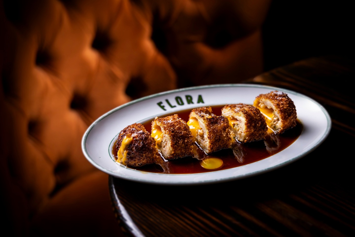 Vamos agora ao Flora Bar. A despeito dos seus 37 lugares à época da inauguração, em 2021, o Flora Bar nasceu grande. Fruto do encontro entre Guilherme Chueire, fundador da +55 GRP (Bagatelle, Santo Pão, Burger Joint, Fazenda Churrascada e Bottega Bernacca), e o advogado Fred Sabbag, nome de destaque na gastronomia paulista, o ponto dos Jardins logo entrou na rota gastronômica da cidade pela boa cozinha e coquetelaria de primeira. Não à toa, já sem caber dentro de si, em 2023 a casa mais que dobrou de tamanho ao incorporar o salão vizinho. Com capacidade ampliada para perto de 100 pessoas, o espaço ganhou um ambiente mais reservado, acessível por um pequeno lance de escadas, e um segundo bar. Tudo sem perder a atmosfera intimista e acolhedora composta por elementos como sofá de couro, paredes de tijolos aparentes e luz baixa.