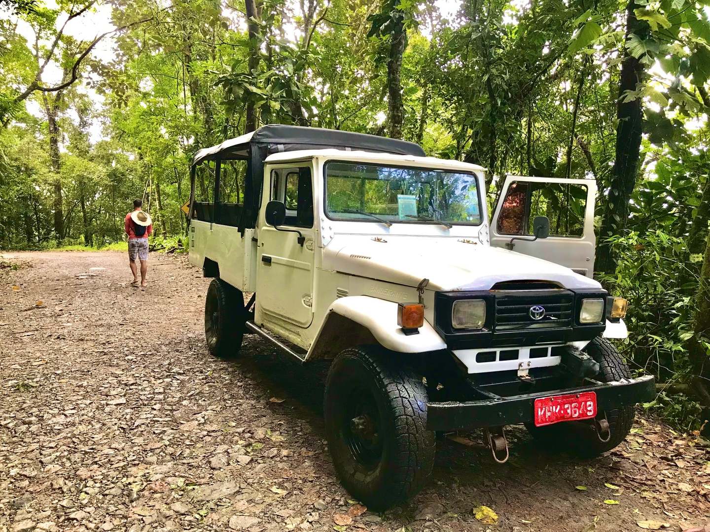 O jipe pega o turista onde ele estiver hospedado, por volta das 10h45 / 11h da manhã. Depois, o grupo segue em direção a uma reserva ambiental mata adentro. A trilha é por estrada de terra cheia de curva e sinuosa. Para organizar o fluxo e ser mais seguro pra todos, existe uma regra que até às 14h os carros só entram e depois das 15h todos os veículos começam a sair. O horário limite pra saída é 16h.