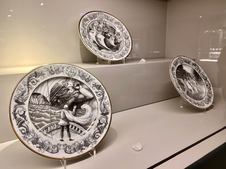À mão: a fábrica tem hoje 16 pintores para peças à mão, vendidas com certificado e que chegam a custar 2.300 euros um prato; ou até 45 mil euros (armário revestido em azulejos). Levam até 3 semanas pra pintar cada peça. No atelier, o visitante pode comprar uma peça (de até 20 euros) e pintar pra se chamar de sua! O complexo conta com loja cheia de variedades.
