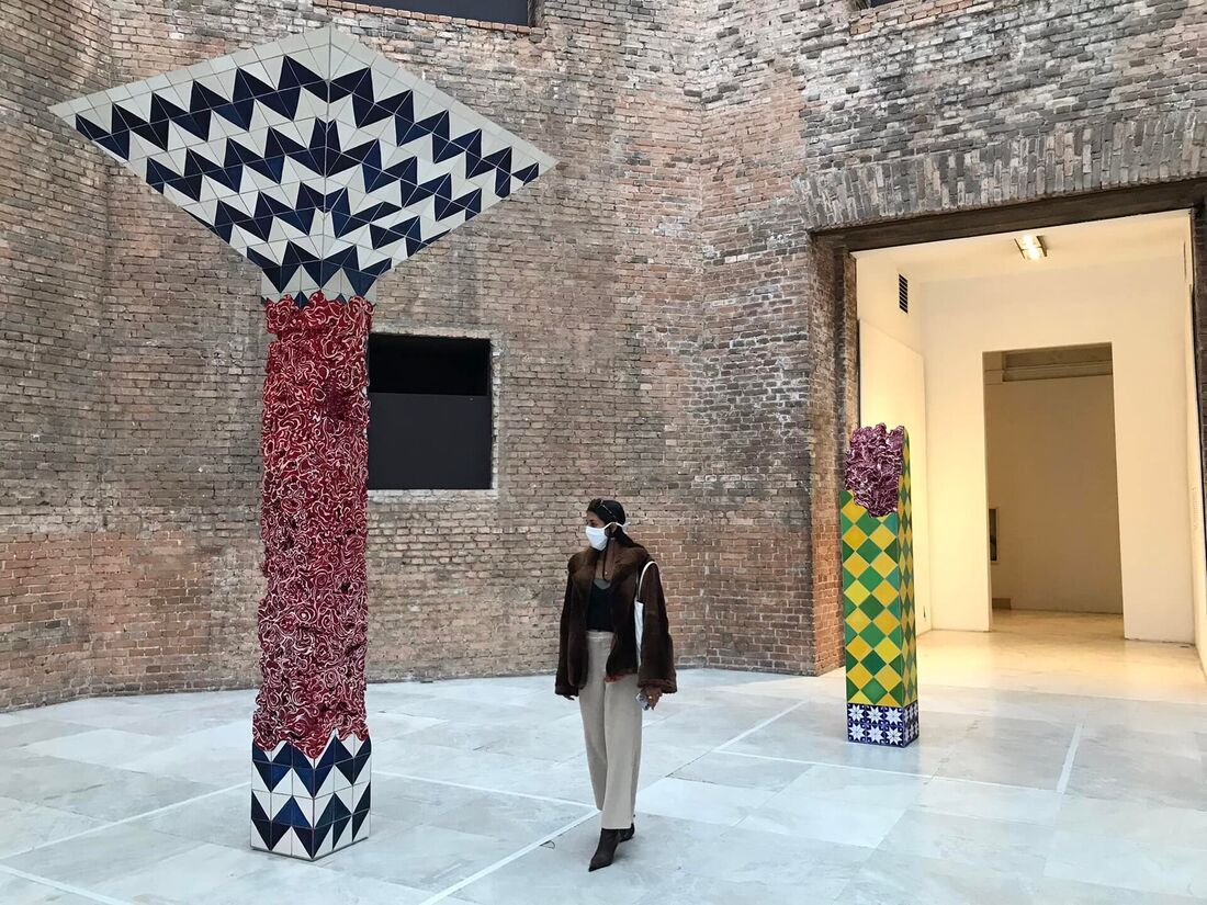 Para o Octógono, espaço central da Pinacoteca,serão apresentados 5 trabalhos dessa série. Dois inéditos que foram produzidos especialmentepara esta exibição:Moedor (2021)eRuina 22 (2022).Um terceiro destaque deste conjunto éRuína Brasilis (2021),generosamente doado pela artista para a coleção da Pinacoteca de São Paulo e esteve em sua última exposição em Nova York no ano passado. Importante destacar que muitas das obras desta mostra tiveram pouca ou quase nenhuma visibilidade no Brasil, ganhando rumos internacionais quase que imediatamente após a sua realização. É o caso de Azulejos (1988), primeiro trabalho em que Varejão usa como referência um painel de azulejaria portuguesa, encontrado no claustro do Convento de São Francisco, em Salvador.