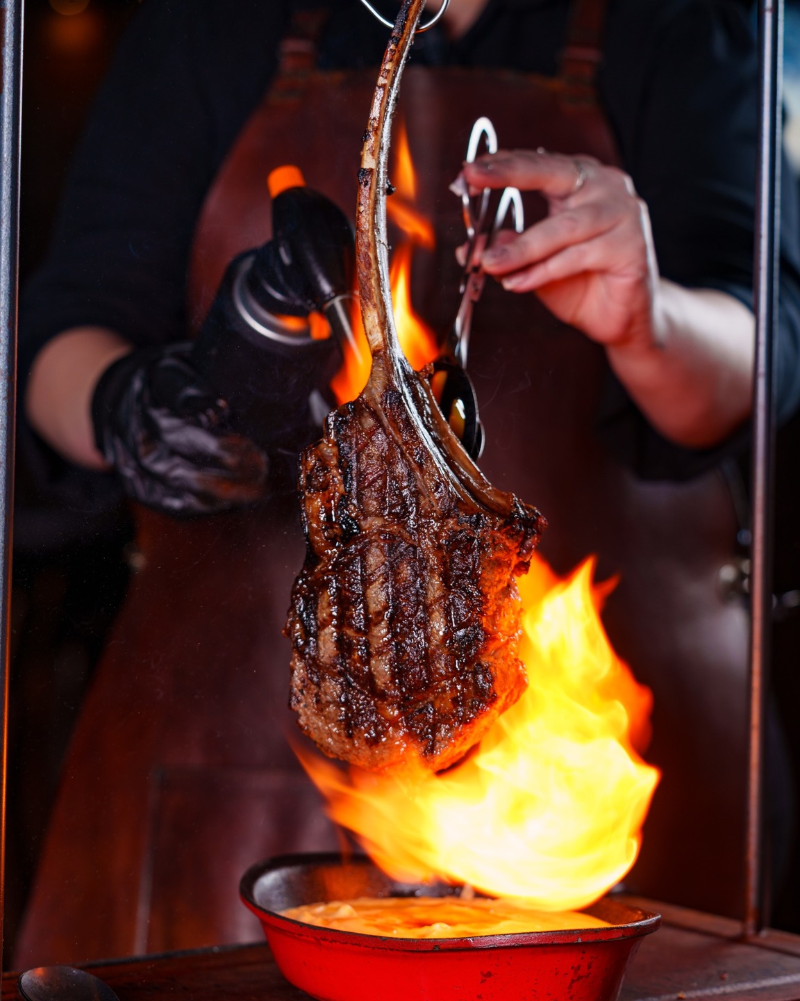 Experiência Tomahawk: um dos momentos mais marcantes da casa é a apresentação do Tomahawk, experiência única que conquista clientes diariamente. São 1kg de carne servido em uma estrutura especial, finalizado à mesa no maçarico com manteiga, que pode ser trufada ou de alho com cinzas de alecrim. O prato é acompanhado de purê rústico (que recebe a manteiga derretida da carne) ou batatas fritas com pupunha. Disponível nas duas unidades, o Tomahawk se tornou um verdadeiro ícone da marca. Ambientes pensados para viver bons momentos: a unidade no Vogue Square, na Barra da Tijuca, é sinônimo de grandiosidade e sofisticação. Com 525 m², capacidade para 175 lugares, o espaço também conta com um charmoso bar de entrada, que serve tanto clientes internos quanto externos, além de uma ampla varanda. O destaque fica para a carta de drinks, que complementa o menu com coquetéis clássicos e autorais. Oferece o equilíbrio perfeito entre ambiente acolhedor, gastronomia premium e atendimento diferenciado. Seja para almoço, jantar ou happy hour, cada visita se transforma em uma memória especial.