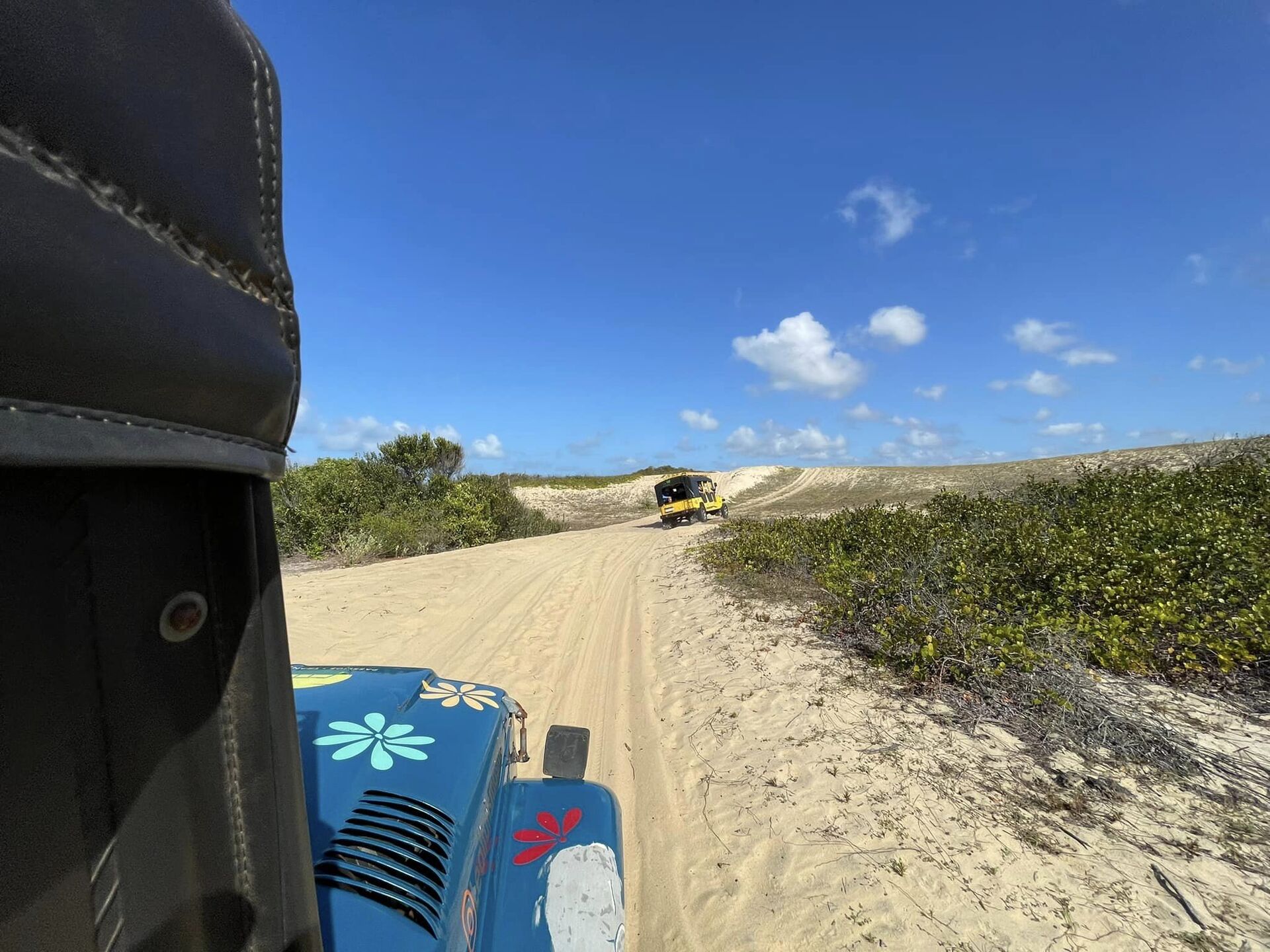 As praias têm uma faixa enooorme de areia, ótimo para a prática de esportes, andar de quadriciclo ou jardineira (os carros 4×4 que fazem moh sucesso por lá). É possível se locomover de táxi ou mototáxi, não há transporte por aplicativo mas algumas agências inclusive dispõem de zap pra que o turista possa fazer o chamado e eles disponibilizam veículos para o transporte no melhor estilo uber. As mototáxis não costumam circular à noite.