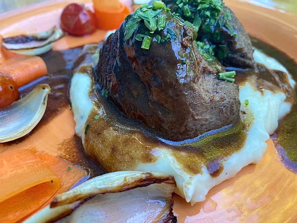Entre as opções, cupim do poço (cupim marinado em molho chimichurri e assado lentamente por 6 horas, servido em caldo de carne, com microverde e picles de mostarda. Acompanha mandioca confitada na manteiga de garrafa e farofa de banana da terra R$ 45 (para 01 pessoa) e R$ 80 (para 02 pessoas). Tem ainda filé mignon, nhoque com rabada, lasanha de abobrinha, etc.
