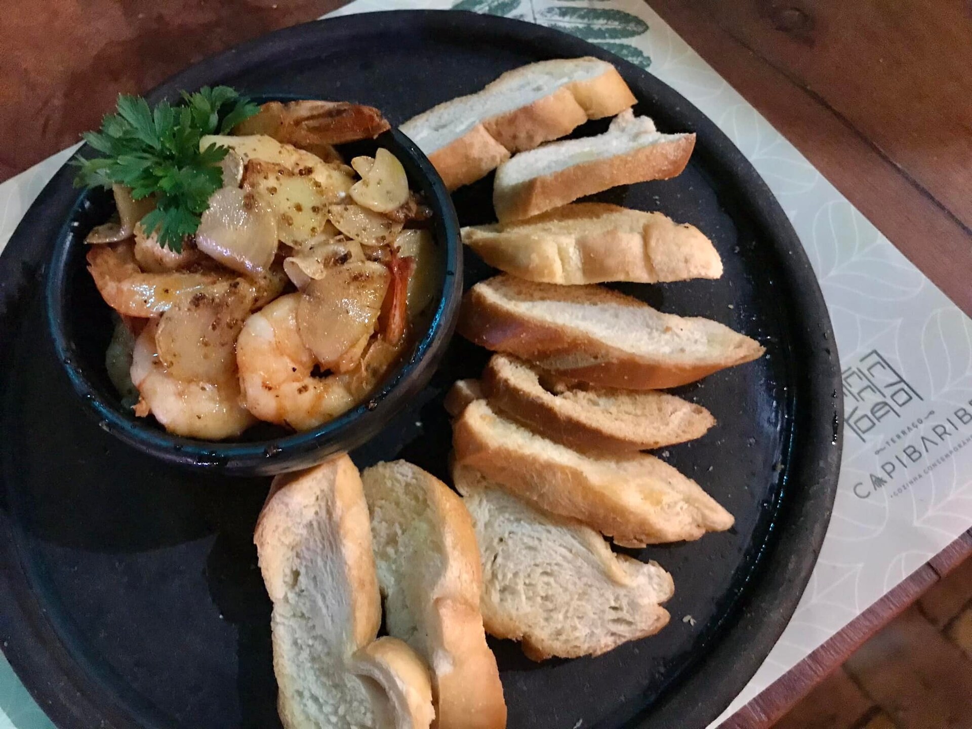O ambiente é um atrativo à parte, rio e árvores em volta, local bastante arejado e uma vibe que todo mundo adora. Bom pra ir de casal, com família ou amigos, seja pela manhã ou à noite. O happy hour é bem concorrido. Se puder, vá de dia e de noite porque a atmosfera é bem diferente mas não menos saborosa. Pra começar...o cardápio sugere caldinho de feijão (R$ 10) e camarão (R$ 12). Detalhe: são de comer re-zan-do! Caldinho bem consistente e cheio de sabor. Ah, super generoso no tamanho. Tem ainda mini espetos de frango, mini pastéis abertos de carne de sol, croquetes de cupim e bolinho de bacalhau. Experimentei este último, vem porção com quatro unidades, é saborosíssimo! E pra beliscar tem ainda: camarões ao Ramiro (à moda do Ramiro, puxado no azeite e alho), polvo à galega (polvo inteiro cozido na baixa temperatura, servido com molho pesto, aioli de cebolinha, mini batatas e confit de tomate cereja defumados (R$ 65).