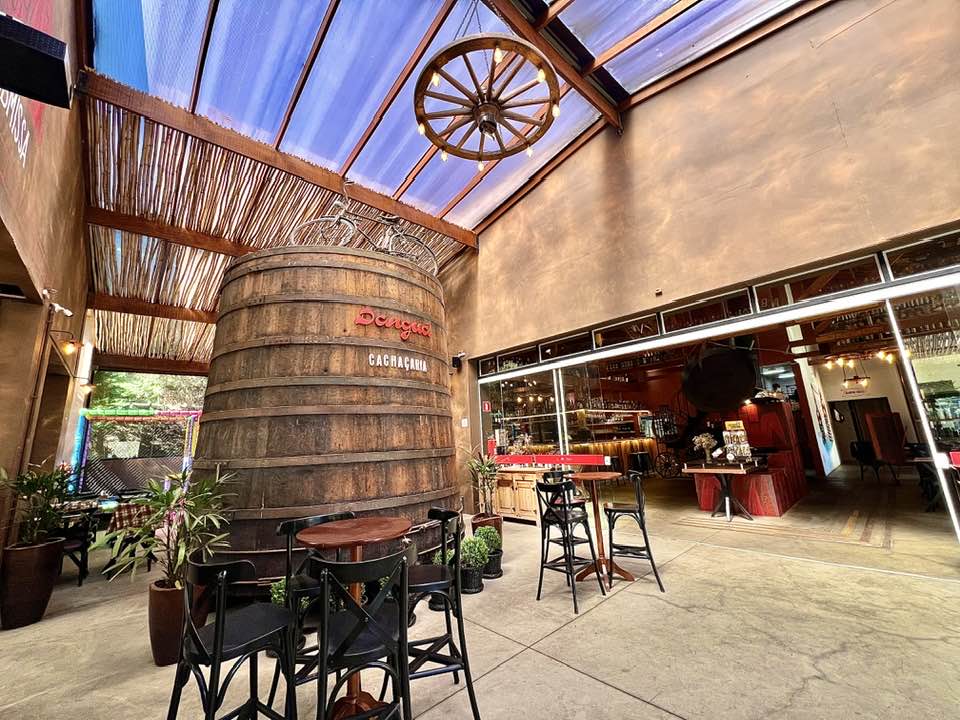 Começamos o tour pela Danguá Cachaçaria, a primeira cachaçaria da Serra da Mantiqueira. Ambiente rústico, amplo e que super combina com o local em que está inserido o restaurante. Ah, é pet friendly e com áreas com grama e bem mais reservadas, ideal pra estar com o doguinho. Precisa de hotel pra sua viagem, é só clicar AQUI! Tem salão interno e chama atenção um barril enorme logo na entrada. O lugar é bem charmoso e a comida saborosa. Inspirado no tupi-guarani, o nome significa “lugar de alegria”, conceito refletido em cada prato servido. Nesta nova fase, a casa apresenta como novidade suas pizzas artesanais, elaboradas com ingredientes selecionados e que prometem