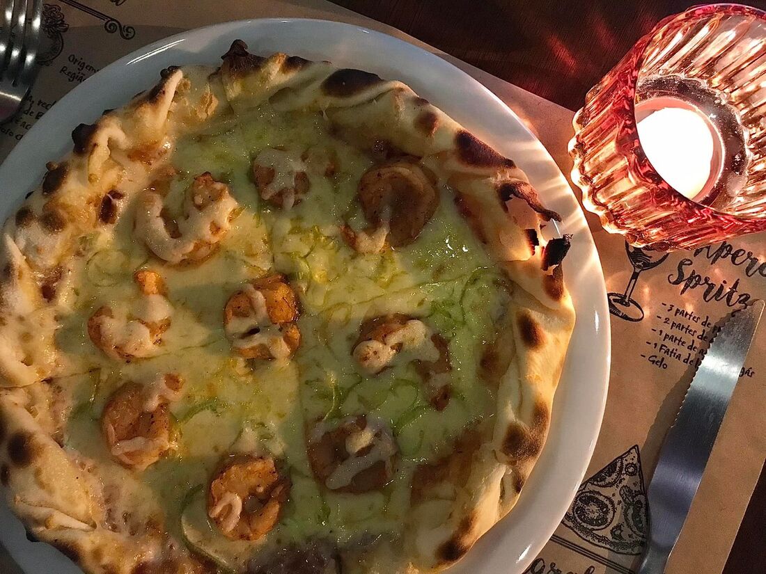 As pizzas saem em dois tamanhos: 4 (individual) ou 8 (para dividir) fatias. Tem a massa bem fininha e crocante, realmente uma delícia! No menu: muçarela, marguerita, salame italiano, lombo canadense, palmito e pepperoni, cinco queijos, além de camarão e alho poró (minha preferida nesta temporada). Entre os novos sabores que fazem maior sucesso está a zucchini (molho Federica, muçarela, abobrinha italiana grelhada, parmesão, nozes e mel). As pizzas doces podem vir em duas opções: chocolate ou chocolate com morango. Para quem quiser sair do item pizza, a sobremesa pode ser mousse de chocolate (chocolate meio amargo com redução de laranja e cascas cristalizadas) ou torta de chocolate belga com caramelo de pistache (fatia de torta Ammofit, sem glúten e sem lactose). A pizzaria vai completar 7 anos de funcionamento e vem oferecendo cada vez mais comodidade e conforto aos clientes. Hoje, conta com salão interno, terraço e ainda ambiente externo ao ar livre. Ah, recentemente também foi inaugurado espaço para eventos privativos. Funciona todos os dias, das 18h às 23h30 e tem música ao vivo no estilo MPB. Atende delivery iFood para pedidos nas regiões sul e leste da ilha.