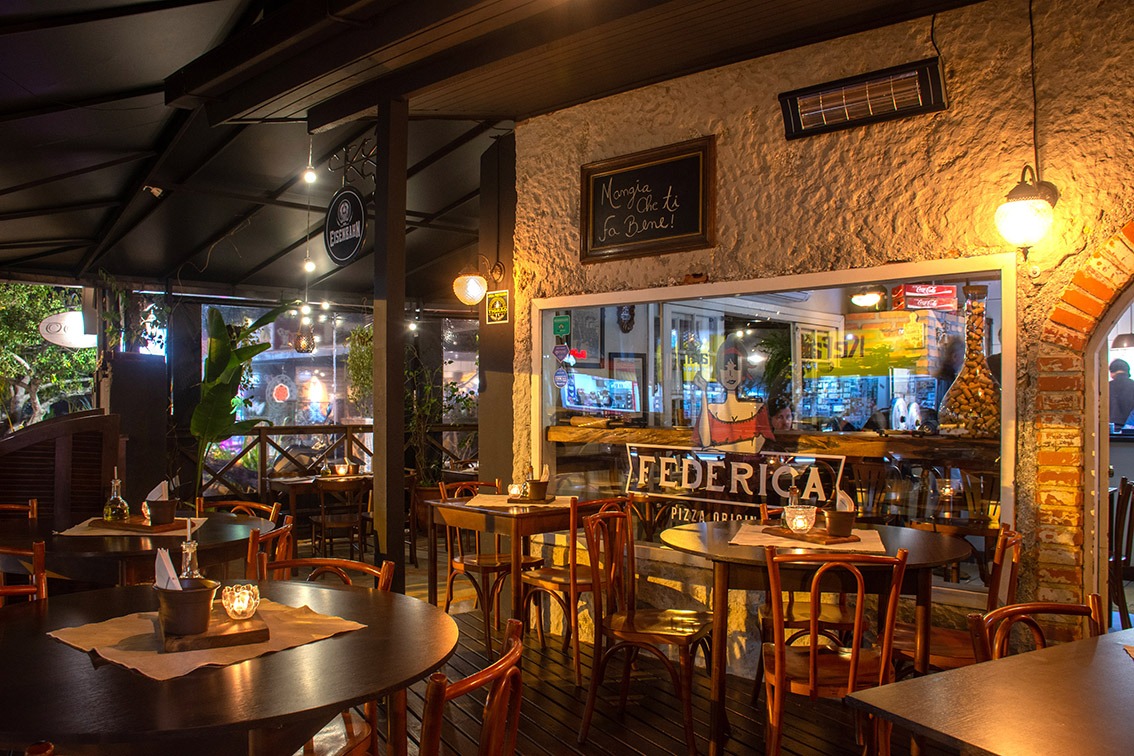 Foto Divulgação / Federica Pizzaria: sabor e requinte num só lugar!O bacana de se hospedar ou visitar o centrinho da Lagoa da Conceição é que, à noite, existe vida noturna. A beira da Lagoa é bem agitada e muitas ruas próximas também garantem a agitação de vai e vem de turistas. E para jantar uma excelente opção é a Federica Pizzaria. Tem diversos sabores entre salgadas e doces. Mas o cardápio vai além das pizzas. O chef da casa, Murilo Ferrari, elaborou mudanças no menu e agora a casa atende também quem busca uma boa massa para jantar.