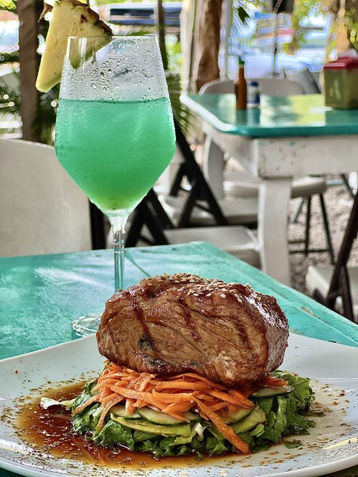 E depois um pescado que foi a sugestão do chef. Vem corvina banhada em molho de mariscos ao tomate sobre cama de salada e batatões. O molho ainda vem com camarões; custa 9.500 colones ou R$ 106. Duas pessoas comem super bem. Vale a pena fazer uma refeição no Isla Coco´s porque lá a gente tem além da comida saborosa, ambiente agradável e atendimento cheio de gentileza. Ah, sem falar que lá também você pode reservar seu passeio pra incrível Isla Tortuga, daqueles passeios de bate e volta que a gente adora. Sai por volta das 8h e retorna às 16h. Aí, na volta já aproveite pra fazer uma refeição deliciosa! Funciona das 11h às 22h todos os dias da semana com exceção da segunda-feira. Para mais informações é só clicar AQUI!