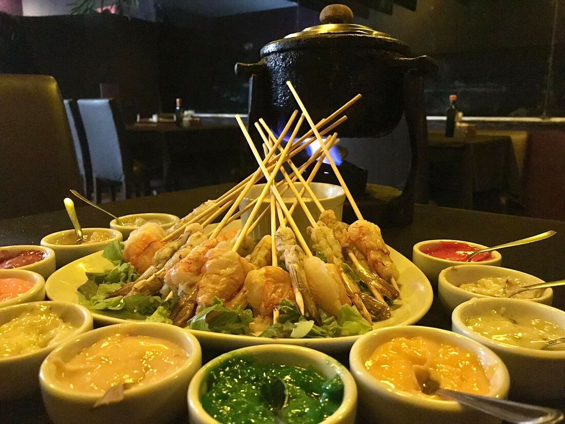 O cliente tem a opção de escolher entre a Sequência promocional (porções limitadas) ou a Sequência Fondue Casa Forte (porções ilimitadas). A casa serve ainda fondue de Frutos do Mar (camarão, lagosta, peixe, salmão, etc). E o cardápio da casa também serve menu além do Fondue: carnes, peixes, crustáceos, além de sobremesas variadas. Desta vez, fomos de fondue de frutos do mar: uma delícia. Os espetinhos com camarão, lagosta e salmão acompanham molho para envolver os itens e deixá-los empanados, super crocantes. Claro que pra finalizar, fomos de fondue de chocolate tradicional, mas tem outras opções de chocolate. Para acompanhar esta delícia, frutas como morango, abacaxi, uva, banana, maçã, além de biscoitinhos e Marshmallow. De comer rezando!