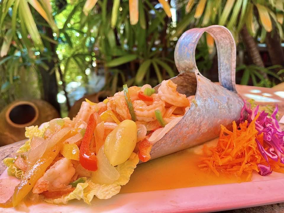 O ambiente é super agradável, tem amplo salão coberto com mesas e algumas com guarda-sol além de gazebos com cortinas naquele estilo instagramável que todo mundo adora. O cardápio é bem variado com massas, frutos do mar, carnes, etc. De entrada, casquinho de siri: pode ir de olho fechado que é uma delícia! Tem ainda sururu ao coco, camarão alho e óleo, panelinha de frutos do mar, etc. Para os que preferem outras opções, a casa oferece ainda costelinha barbecue, pasteis de frango, carne ou camarão, dadinho de tapioca, bolinho de bacalhau, caldinho de camarão, peixe ou feijão, entre outros.