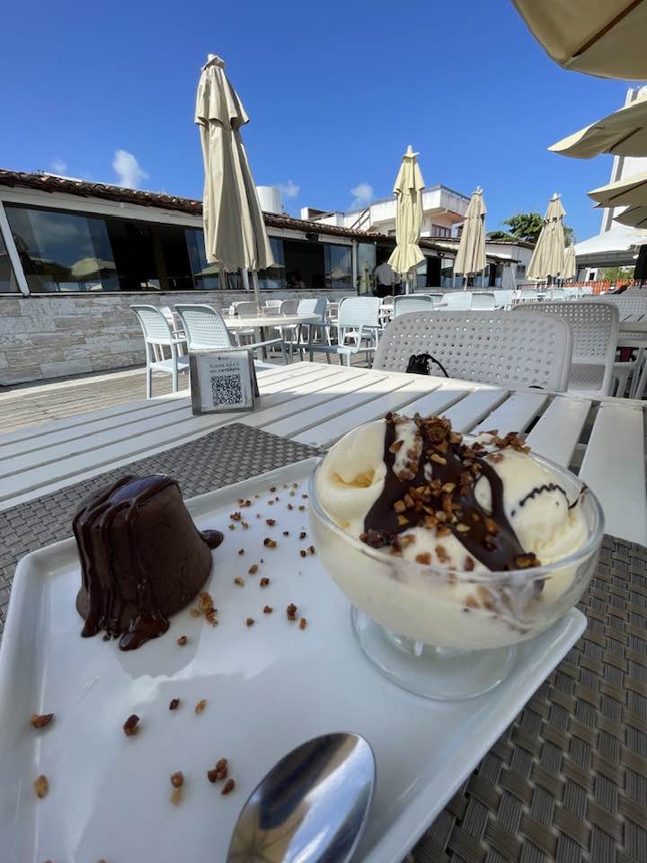 A casa serve ainda picanha acebolada, saladas de camarão, salmão ou frango, risotos de camarão, frutos do mar, polvo, massas (espaguete, fettuccine), frango grelhado, peixes, camarões e carnes. O cardápio é bem variado, vai ser difícil escolher, já adianto. Para a garotada tem menu infantil e de sobremesa cartola (tipicamente pernambucano), vem banana e queijo manteiga fritos cobertos de açúcar, canela e mel de engenho à parte, acompanha sorvete de creme. Além de petit gateau de chocolate, brownie de chocolate, torta de limão siciliano, pudim de leite com calda de doce de leite, sorvete etc.