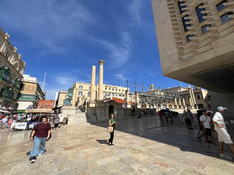 Durante a segunda guerra, Malta foi atingida por muitos bombardeios. Foram mais de 60 mil bombas. Neste local, funcionava o antigo Teatro Real de Ópera, era o mais famoso deles, construído em 1866. Só que com tantos incêndios e bombardeios, resolveram deixá-lo como está até hoje, algumas colunas preservadas e o resto parecem ruínas, atualmente funciona como centro cultural.