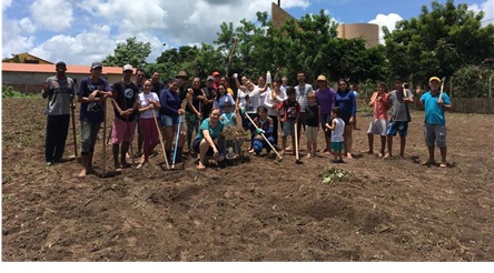 Mutirão capinando o terreno da Escola dos Sonhos | Arquivo Pessoal