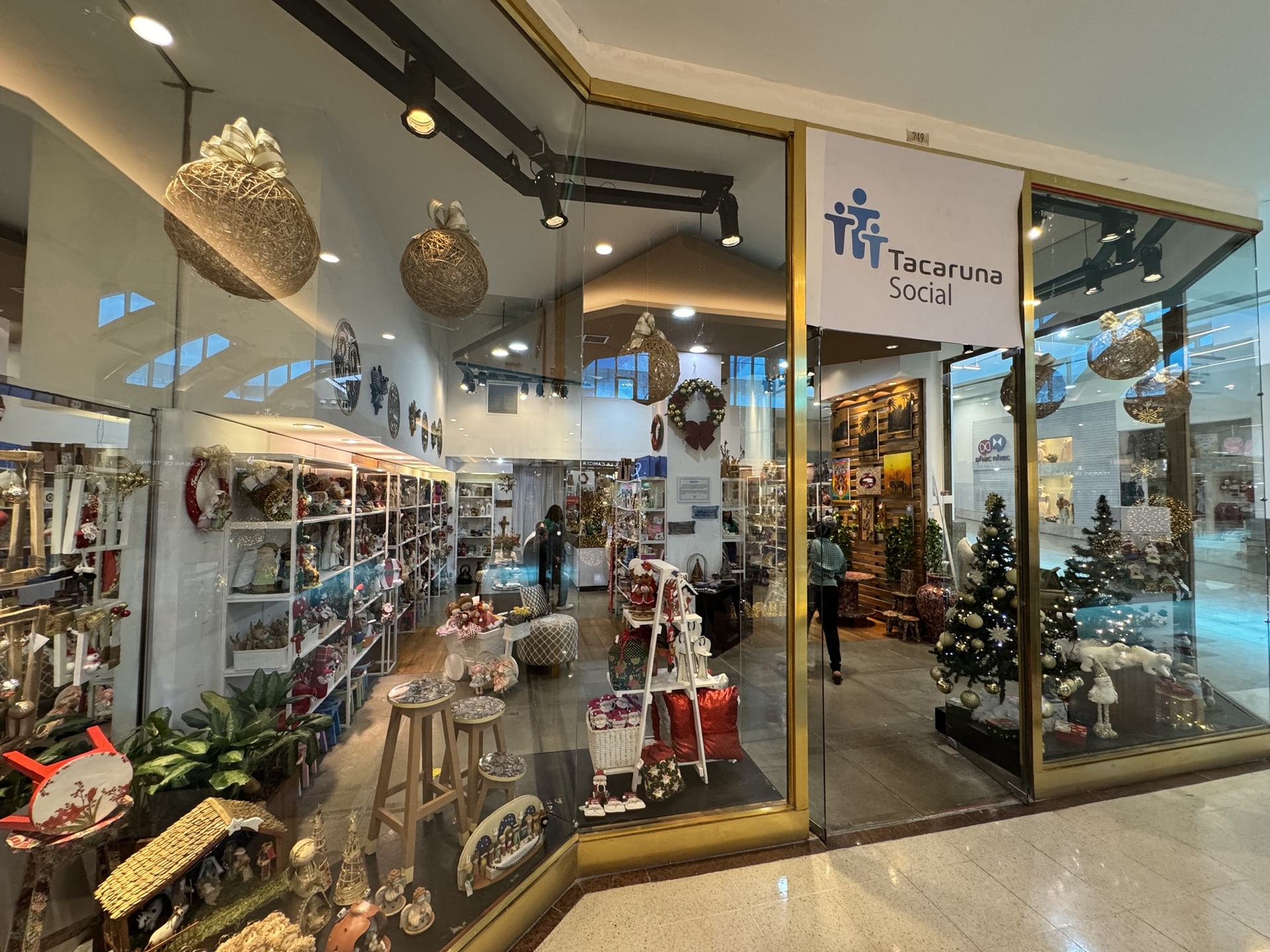Localizada no segundo piso do mall, próximo à loja Nhac Nhec, a Loja de Natal do Tacaruna Social reúne uma grande variedade de produtos confeccionados pelas artesãs capacitadas pelas oficinas oferecidas pelo projeto. São peças únicas e cheias de significado, como artigos de decoração, produtos infantis, religiosos, chaveiros, bolsas, enfeites natalinos, bancos, entre outras opções de presentes feitos à mão.