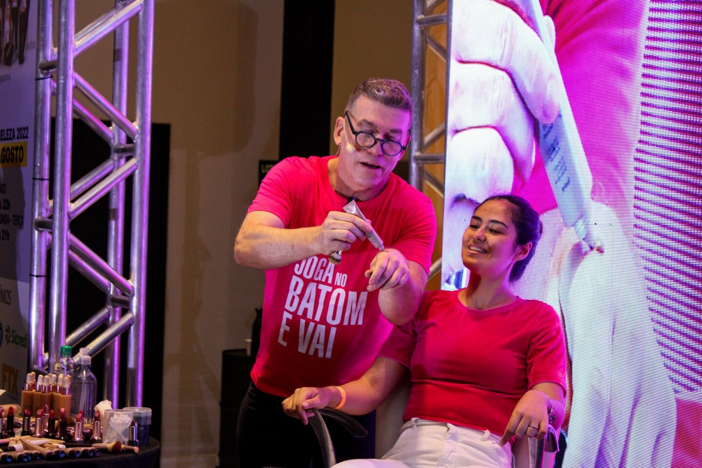 Marcos estava de passagem por aqui por conta da Turnê Adoro Maquiagem, que está rodando nas principais cidades com repasse de conhecimentos e dicas práticas para as consultoras aplicarem o conteúdo no dia a dia. Aliás, o maquiador começou sua carreira profissional como consultor Natura, sabia?