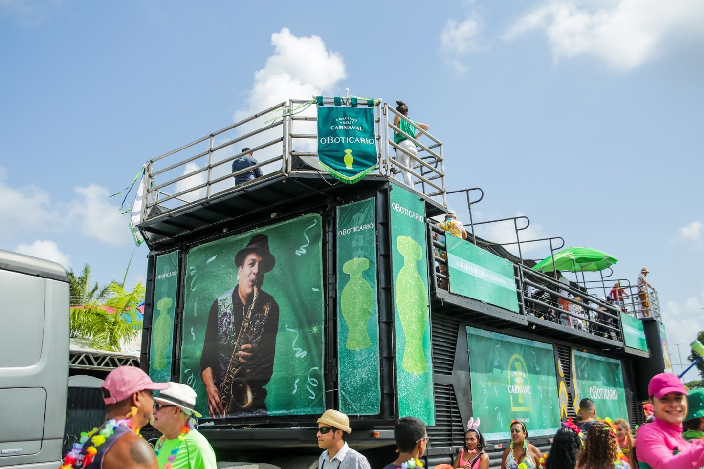 O Boticário esteve fortemente presente no nosso Carnaval. A marca circulou com promotores ofertando reforço de perfumaria e proteção solar aos foliões. Mas não parou por aí. O Boticário contou com trio elétrico próprio durante o Galo da Madrugada com o embalo de Maestro Spok, Almério e Vanessa da Mata. No camarote oficial do Galo, a empresa marcou presença com um Camarim de Make para os convidados e experimentação de produtos.