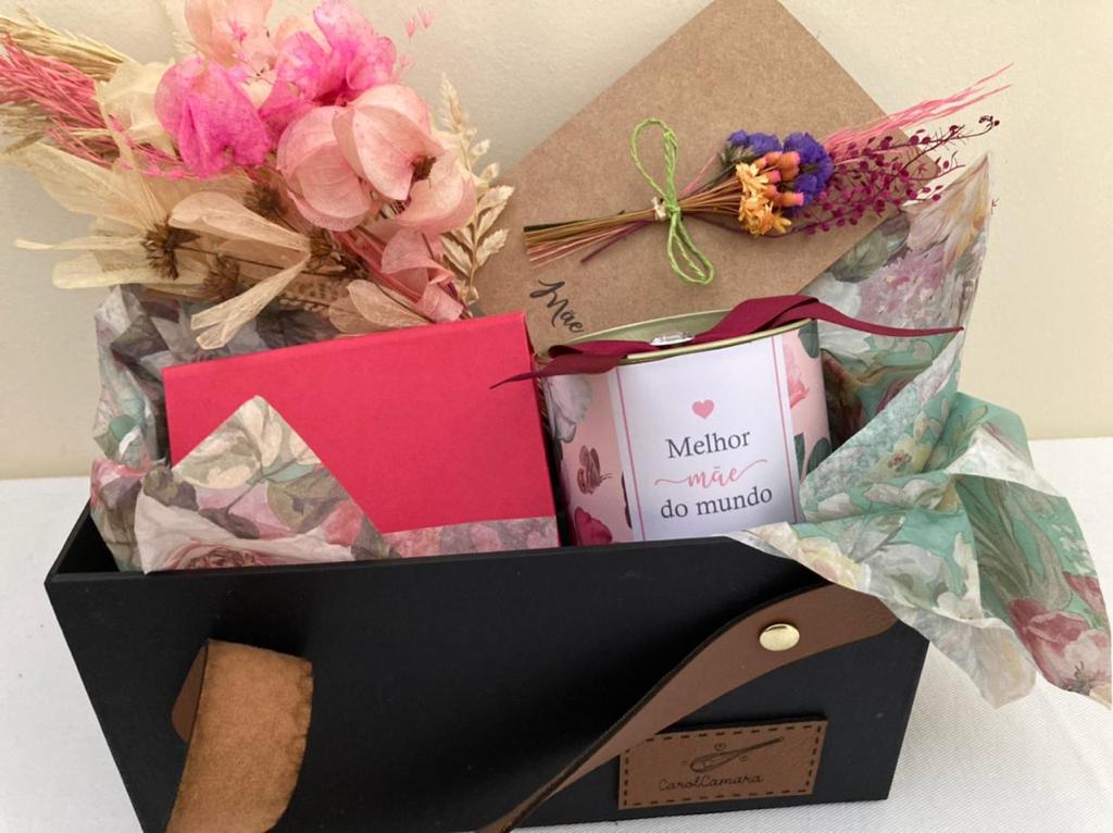 Em parceria com outra empresária local, ela preparou kits de bolo ou cheese cakes com buquê de folhas secas da Blumen Ateliê (https://www.instagram.com/blumenatelier_floressecas/). Outra opção interessante é o Kit Maleta de Luxo, que inclui Brownie do coração; Lata de dadinhos de pistache ou palha italiana de limão siciliano; Coração lapidado de 200g; Cartão artesanal de flores secas; Bouquê de flores secas da Blumen; Tag de Feliz Dia das mMes e Maleta com alça de couro. As encomendas são feitas via mensagem pelo WhatsApp através do número: (21) 9 8153.6507.