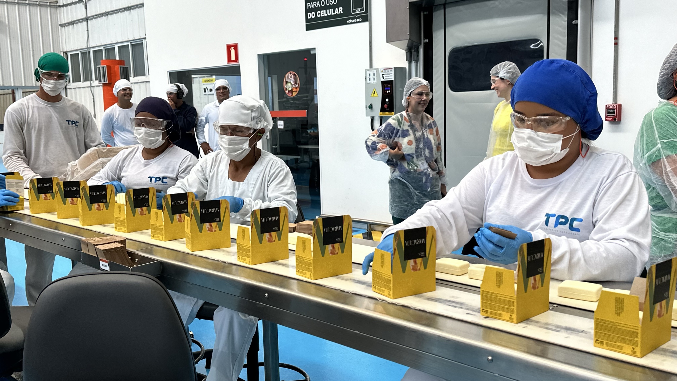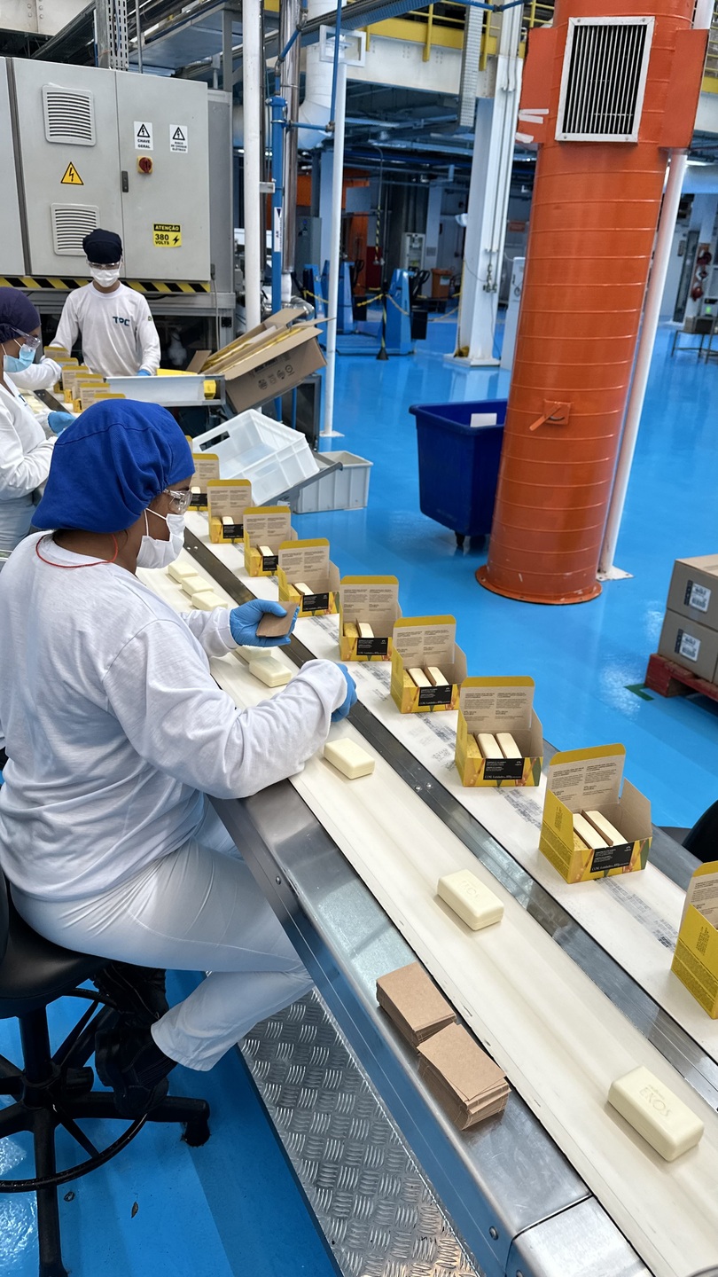 Entre as nossas visitas, conhecemos internamente o Ecoparque, que produz, atualmente, 94% da demanda de sabonetes de Natura &Co América Latina (Natura, Avon e The Body Shop) com números como 505 milhões de unidades fabricadas, somente em 2023, sendo 3,2 bilhões em uma década. Detalhe: com expectativa de produção de 600 milhões para 2025.