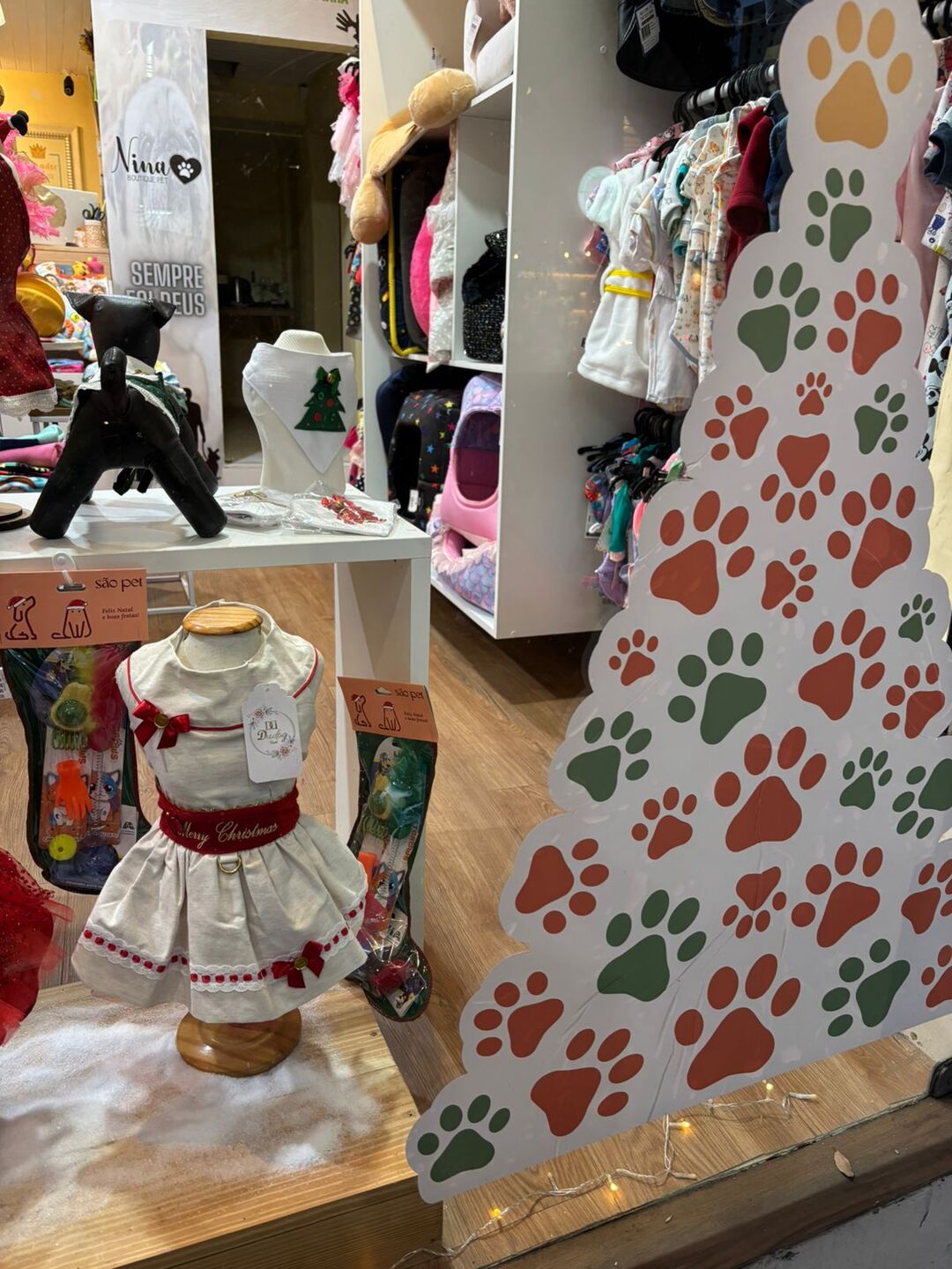 Mais do que uma boutique, a Nina Boutique Pet entende que os pets são verdadeiros membros da família. Por isso, cada detalhe da coleção foi pensado para proporcionar conforto, beleza e alegria, reforçando o vínculo entre tutores e seus companheiros de quatro patas. Além das roupas e acessórios temáticos, a loja oferece uma variedade de brinquedos, petiscos e até panetones especialmente desenvolvidos para pets — uma opção encantadora para quem deseja presentear uma família pet neste Natal. A loja fica localizada, na R. Barão de Itamaracá, 215, Espinheiro.