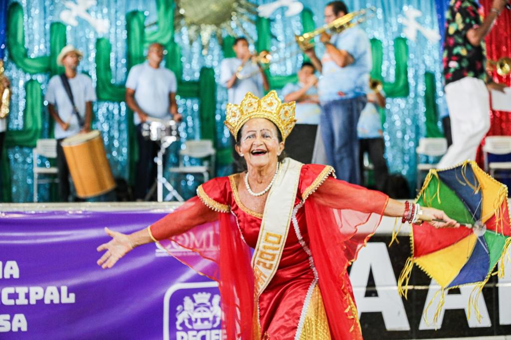 Cacilda Medeiros, gerente da Pessoa Idosa do Recife, ressalta que idade não é empecilho pra cair na folia."Nesta 12ª edição foram eleitos uma rainha do bairro do Ipsep, que faz parte do Grupo de Convivência do Núcleo da Pessoa Idosa do Hospital Oswaldo Cruz, e um rei que faz parte do Grupo de Convivência Paz e Amor, do Engenho do Meio", revelou Cacilda.