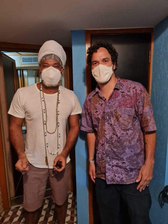 "Ele se revela um cara extremamente inspirado, talentoso, generoso e atento. Tem um olhar de entendimento do lado técnico dos inserts, da edição. É um cara muito instigado a tocar todos os instrumentos. Ele é craque de produzir as sonoridades muitos particulares e não tem medo do erro”, conta Pedro. Os dois estão prestes a lançar mais um projeto juntos, com previsão de lançamento para o início do segundo semestre.
