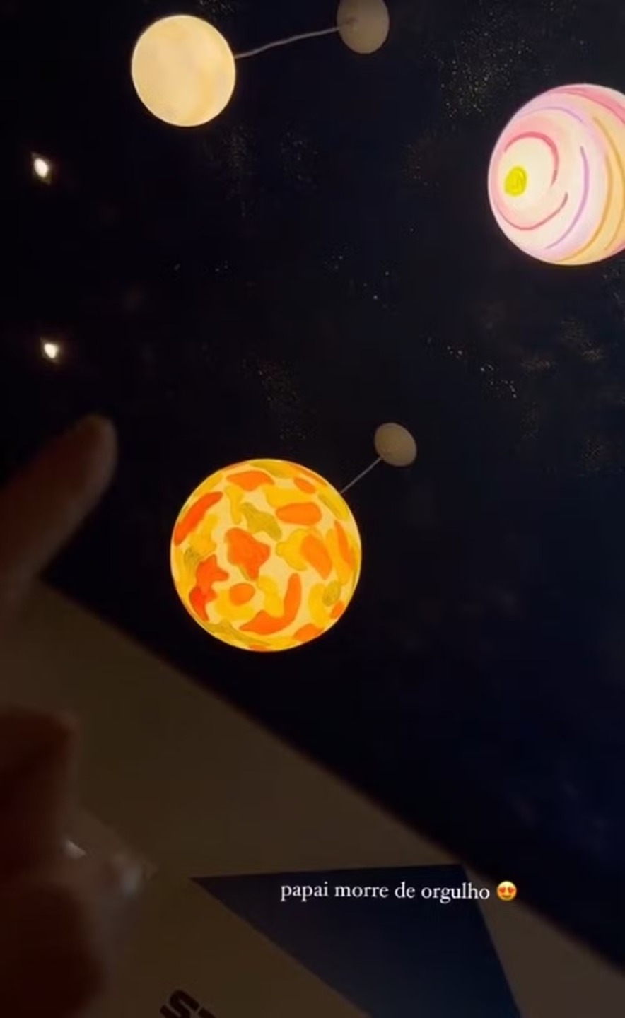 Murilo Huff demonstrou de várias formas o seu amor pelo filho, Léo, de 5 anos, fruto de seu relacionamento com Marília Mendonça. Em uma delas, o cantor personalizou o quarto do garoto com temática intergaláctica, com móbiles de planeta saltando do teto — um tema pelo qual ele é apaixonado. O público que acompanha o artista, que atualmente vive um conflito com sua ex-sogra, Dona Ruth, pela guarda unilateral da criança, pede com frequência que ele grave conteúdos ao lado do pequeno.