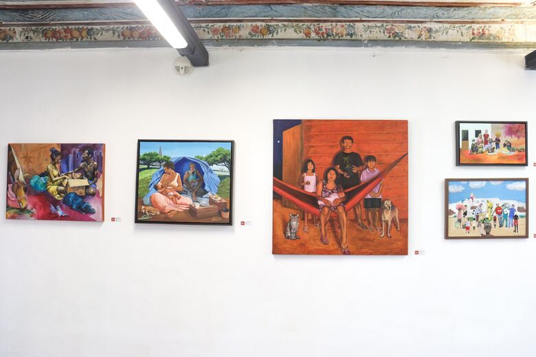 A cena do nascimento de Cristo foi transposta para um contexto brasileiro, marcado pela exclusão social, em diversas obras presentes na exposição. Pessoas em situação de rua, indígenas, nordestinos e trabalhadores ocupam os lugares de Maria, José e os Reis Magos nessas representações.