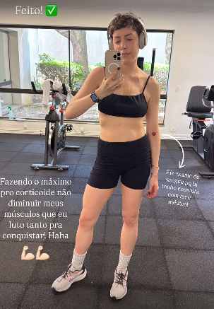 "Fazendo o máximo pro corticoide não diminuir os músculos que eu luto tanto pra conquistar (risos)", brincou.