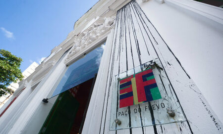 Fachada do Paço do Frevo aparece manchada em protesto contra vazamento de óleo