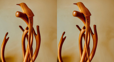 “Foi assim que cheguei à escultura. Comecei explorando concreto e metal e, com o tempo, migrei para a madeira, material com o qual trabalho há mais de uma década. Foi na madeira que encontrei minha verdadeira identidade artística”, conta Gegê, em conversa com a Folha de Pernambuco.