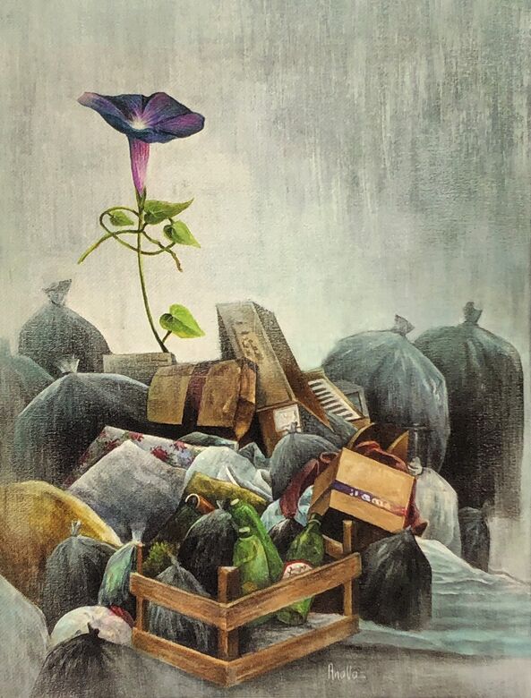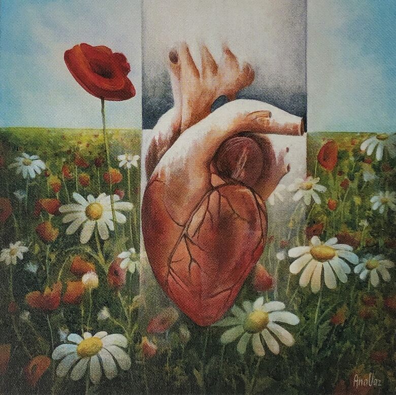 "Primavera", de Ana Vaz, foi inspirado no haicai do poeta romeno Constantin Stroe“Primavera”, quadro que ilustra a capa do catálogo da mostra, traz um grande coração gelado em meio a um campo de flores.
