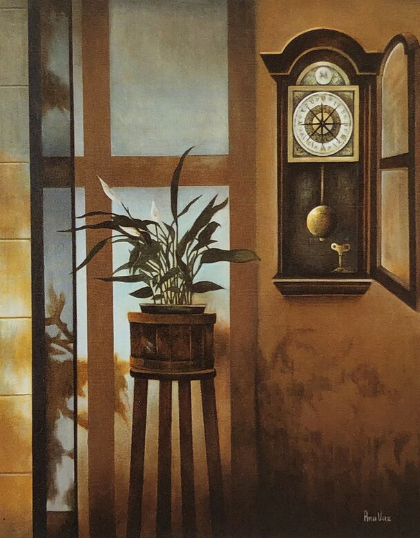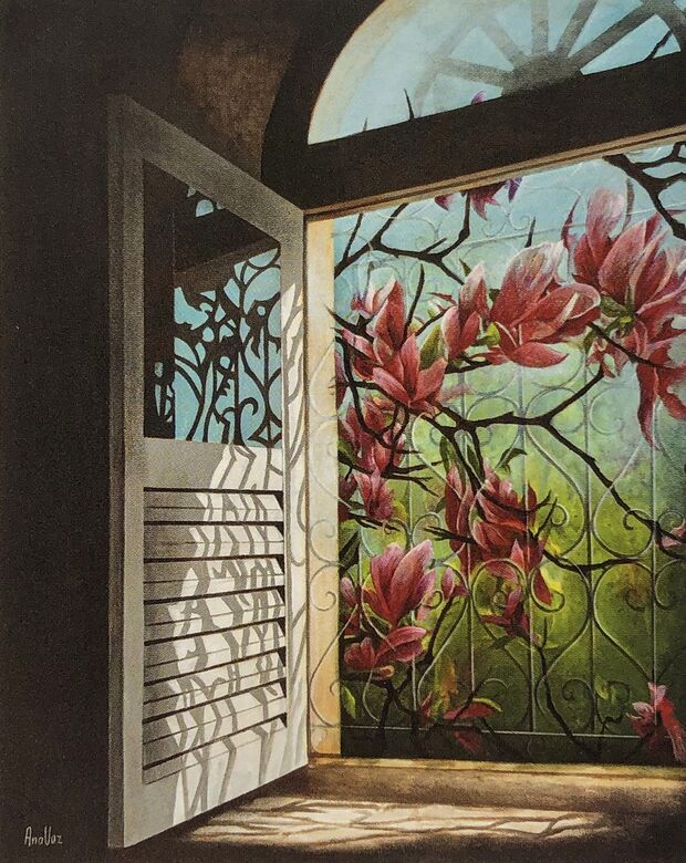 Em seus quadros, Ana Vaz valoriza a iluminação. Sempre há um foco de luz que se sobressai da penumbra e um destaque para um contraste entre o claro e o escuro. Nessa nova exposição, ela traz imagens evocadas da imaginação e também de um vasto repertório de fotografias do seu acervo pessoal. Em muitas das obras, a exemplo de “Primavera”, ela cria um jogo lúdico com a escala. No quadro inspirado em uma janela do prédio do Iphan, no bairro de São José, as magnólias são representadas em uma escala superdimensionada, para assumirem o protagonismo da cena.