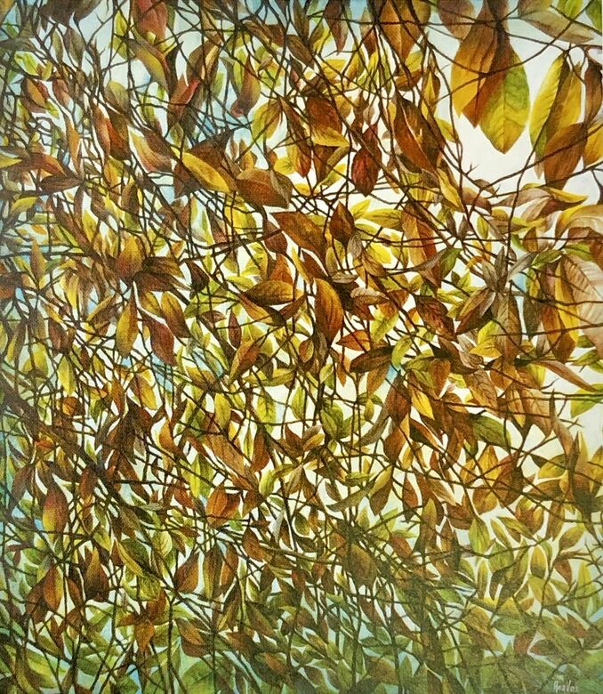 O haicai do poeta francês Alain Richard, inspirou a artista a criar um caleidoscópio de folhas multicoloridas: